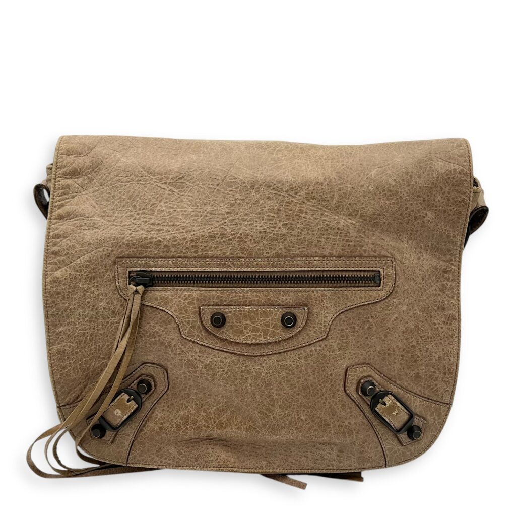 City Shopper Beige Tote Bag in Distressed Leather, Gunmetal hardware
