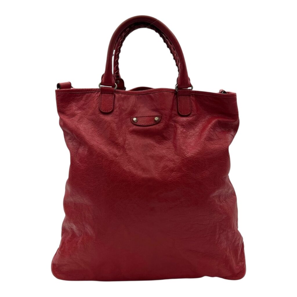 2-Way Red Top Handle Bag in Distressed Leather, Silver hardware