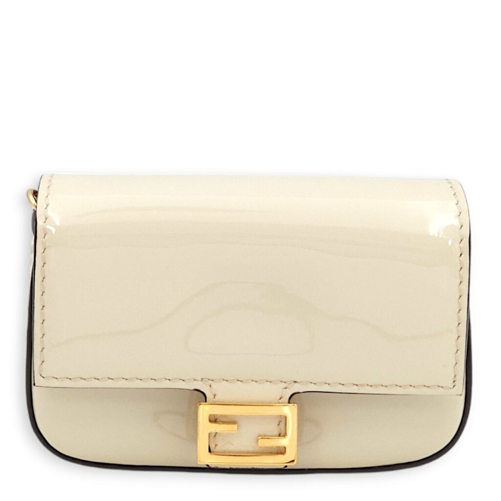 Nano Baguette Belt bag Cream Charm in Patent Leather, Gold hardware