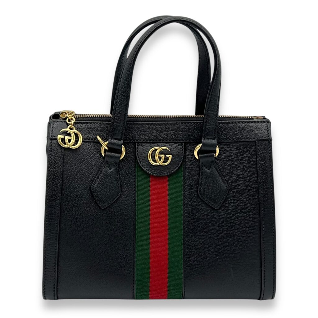 Ophidia Top Handle Bag Black in Calfskin, Gold hardware