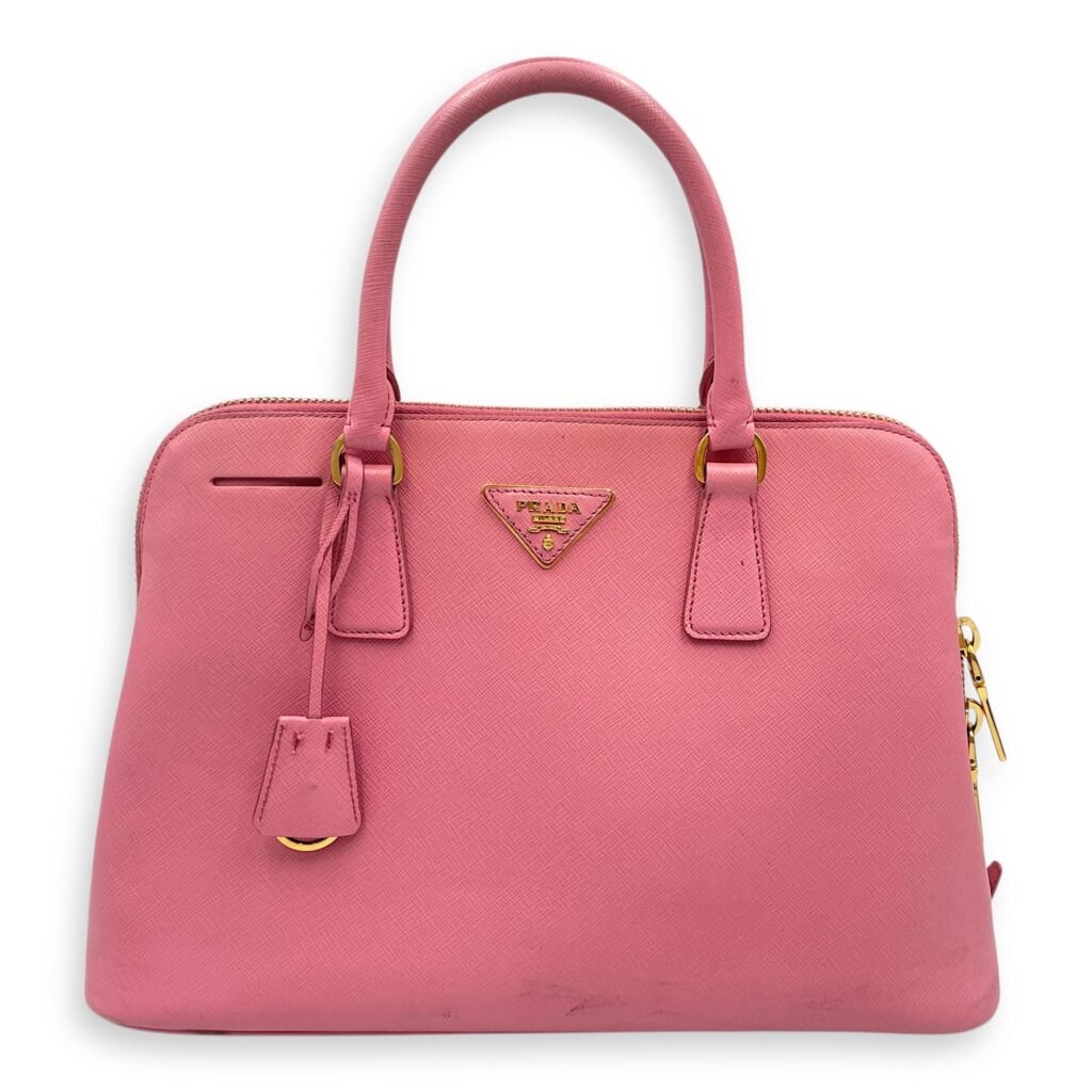 Promenade Pink Top Handle Bag in Saffiano Leather, Gold hardware