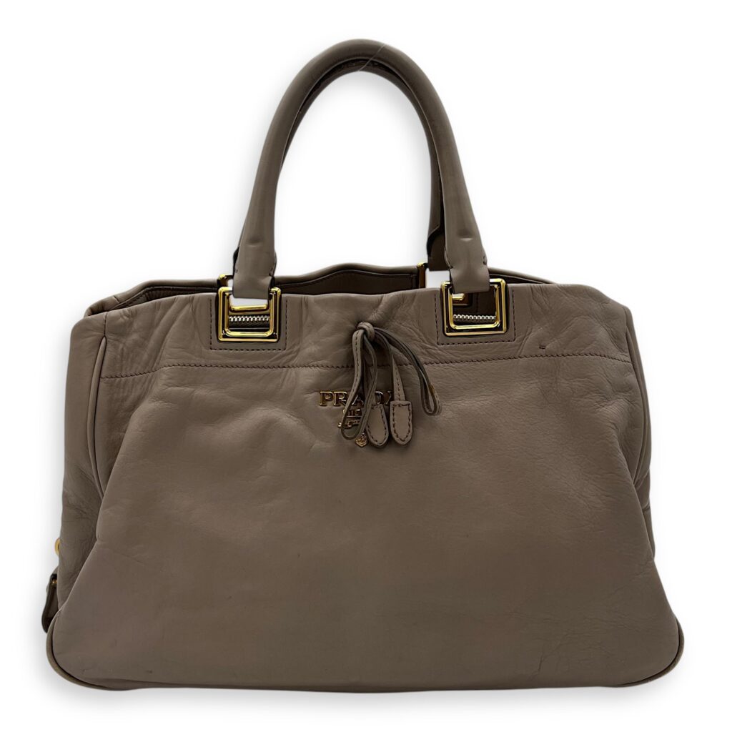 Logo Top Handle Bag Brown in Calfskin, Gold hardware