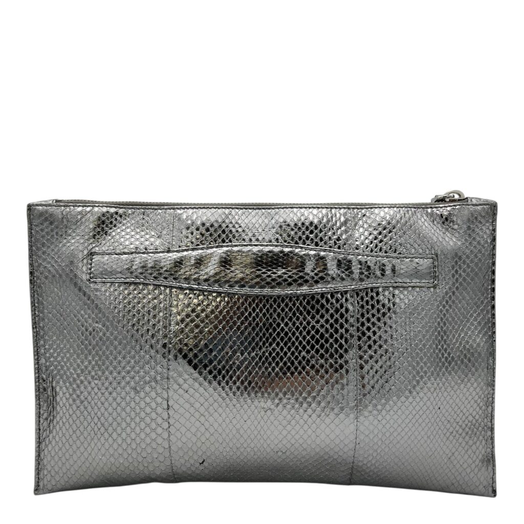 Push Lock Clip Silver Clutch in Python Embossed Calfskin, Silver hardware