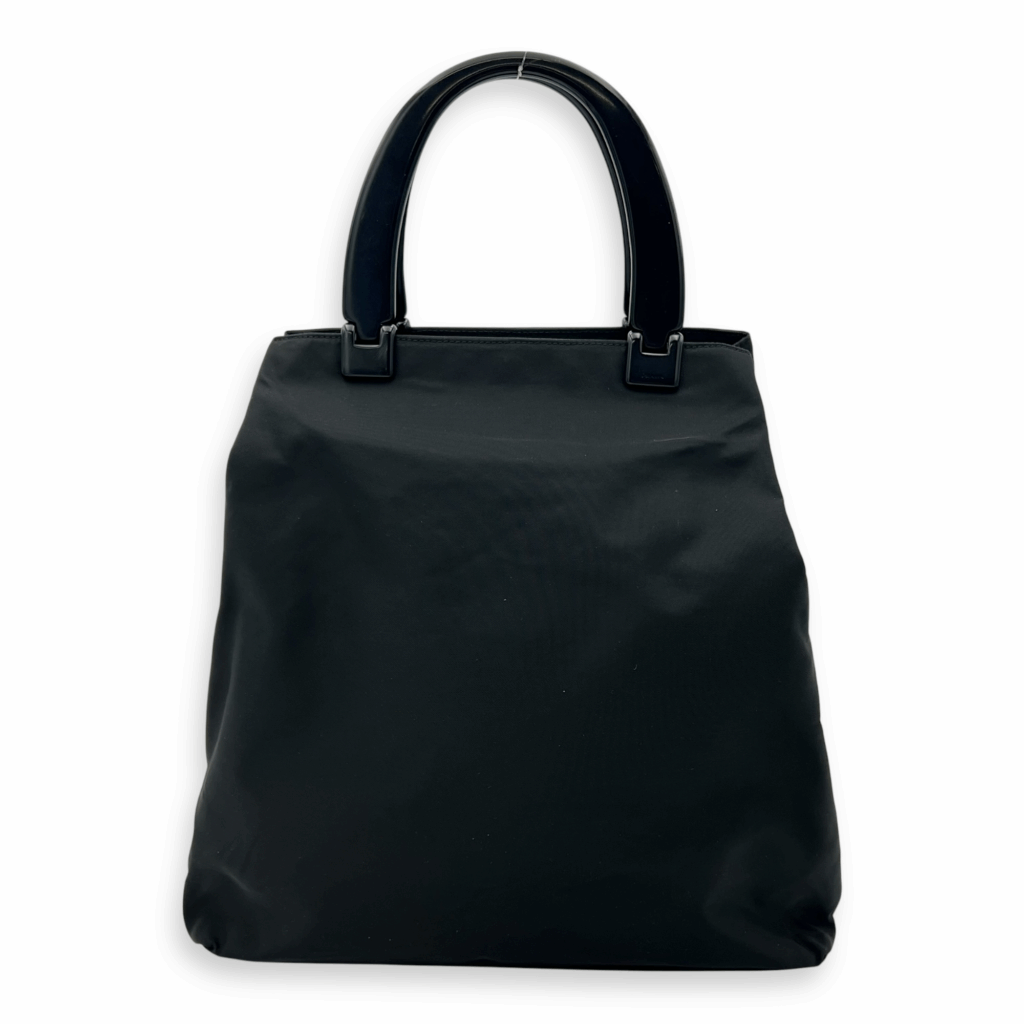 Logo Top Handle Bag Black in Nylon, Silver hardware