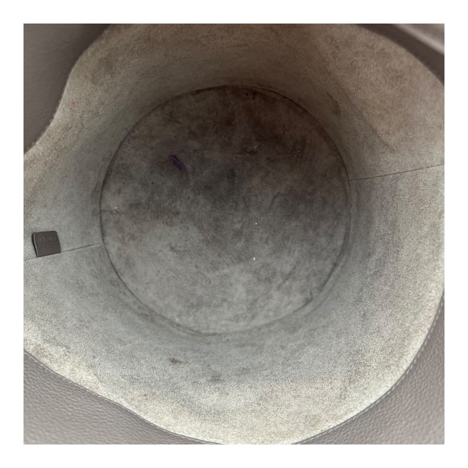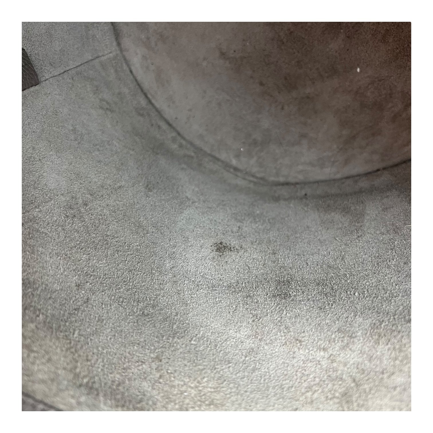 – Lining: Stains, Fuzzing due to the nature of the suede, well used