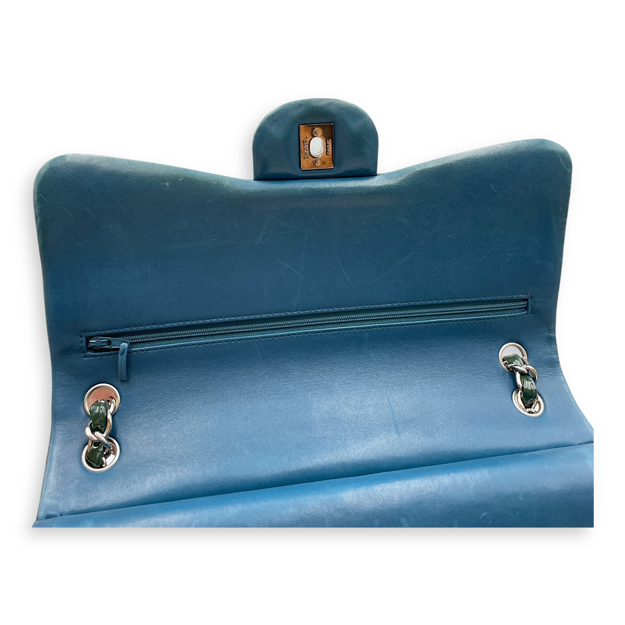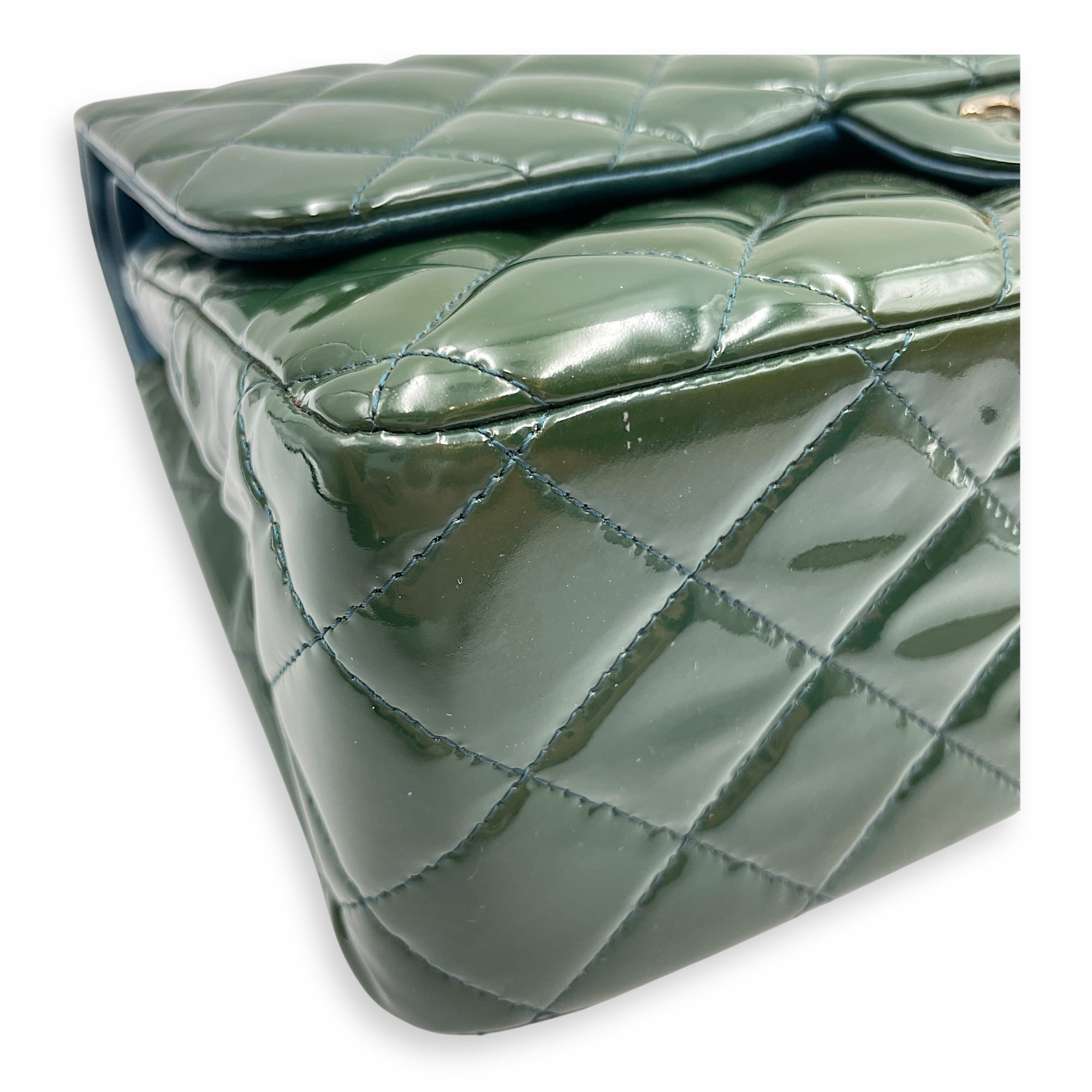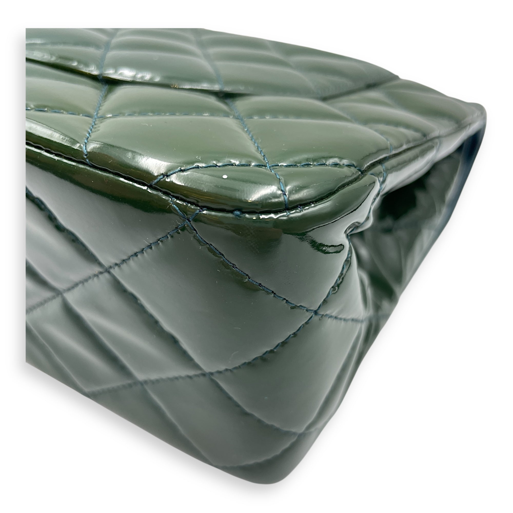 Be the first to review “Classic Double Flap Jumbo Green Shoulder Bag in Patent Leather, Silver hardware”