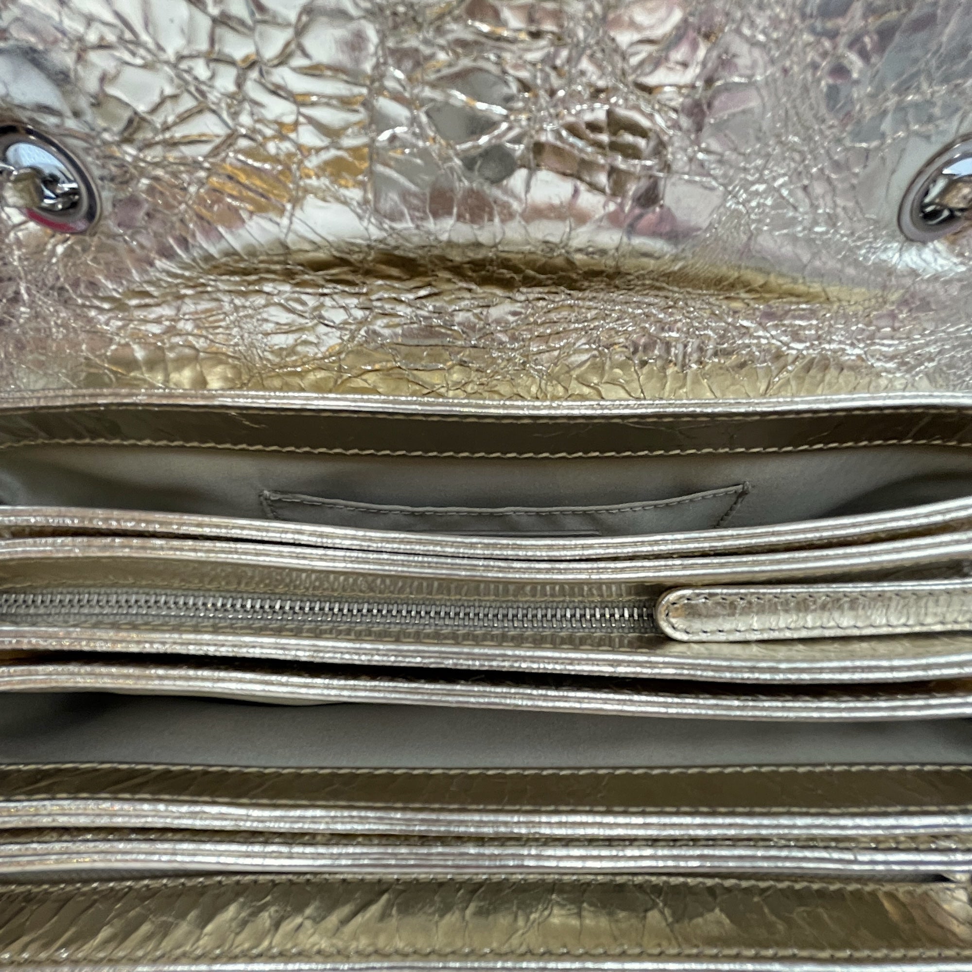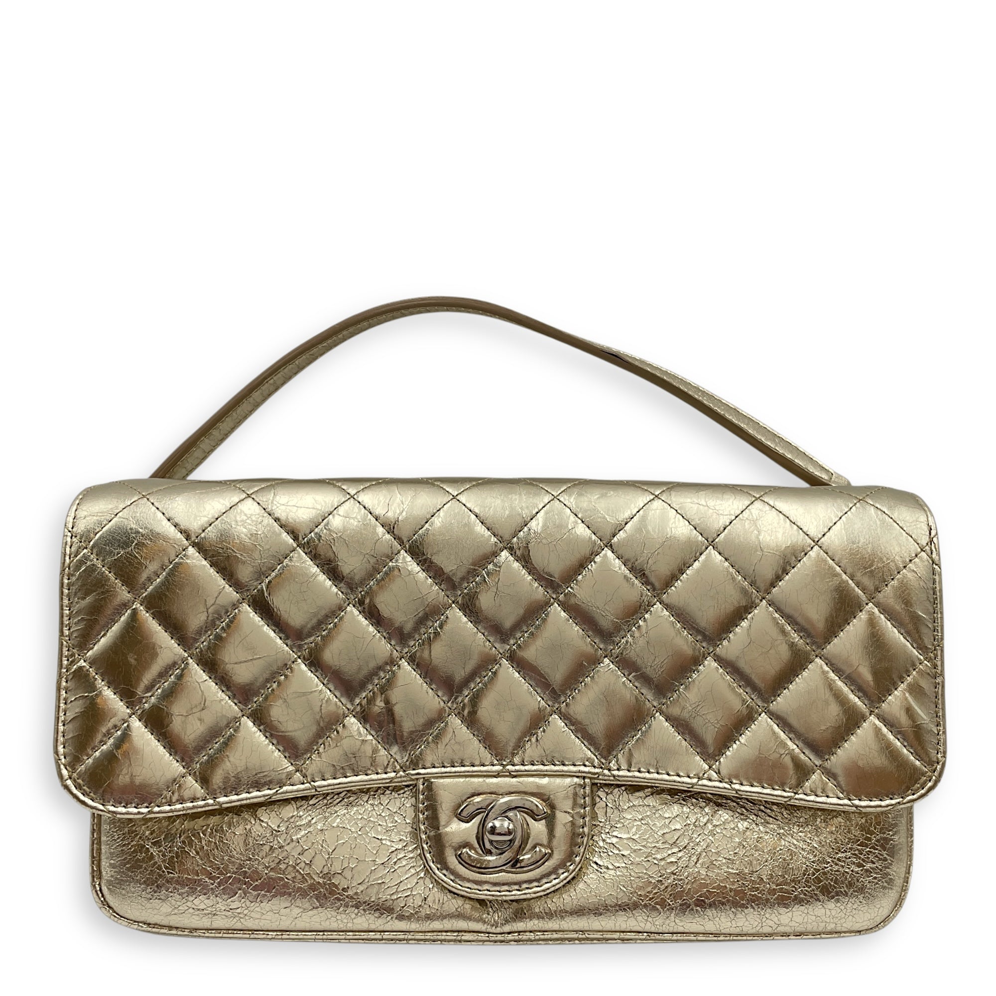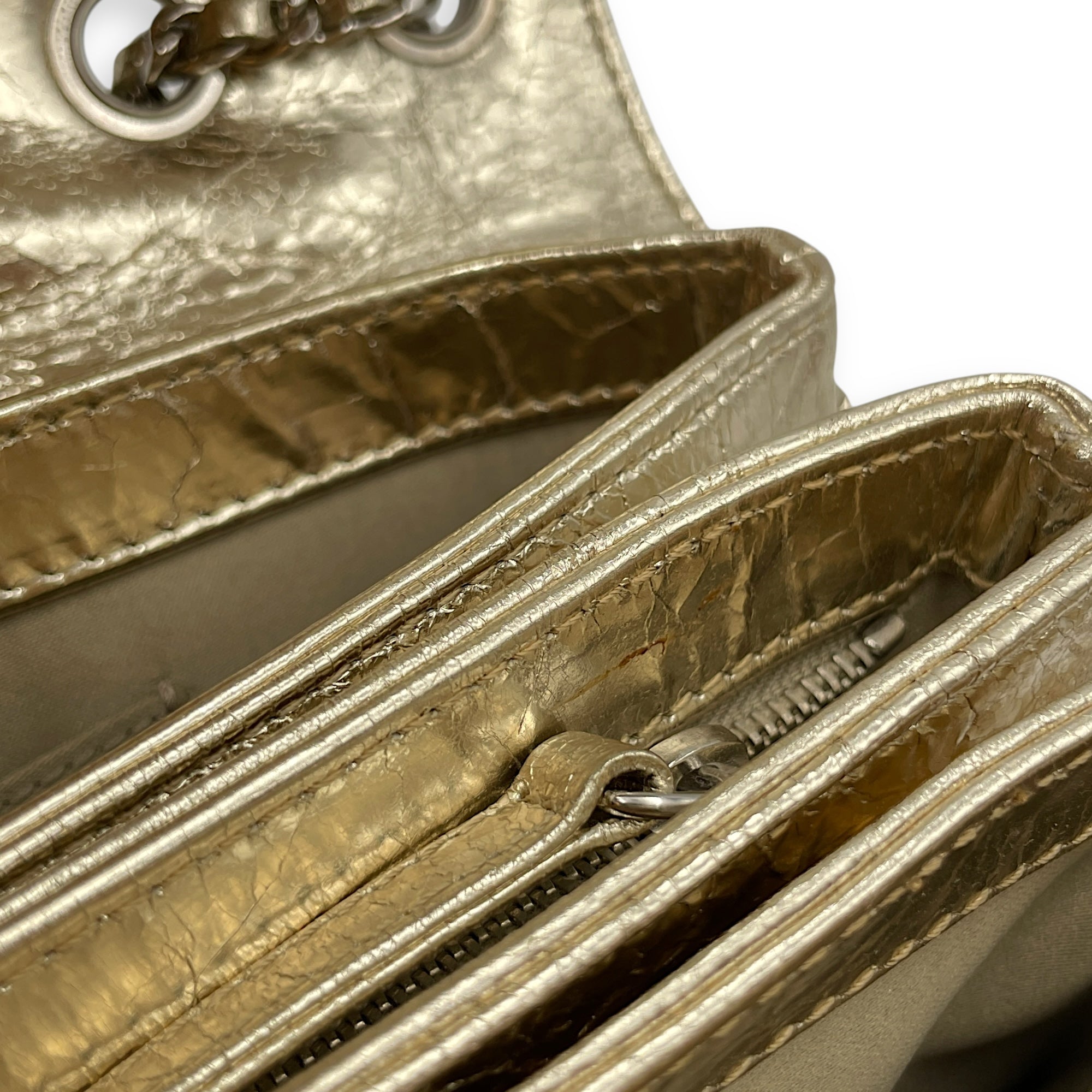 Crinkled Gold Flap Bag in Distressed Leather, Gold hardware