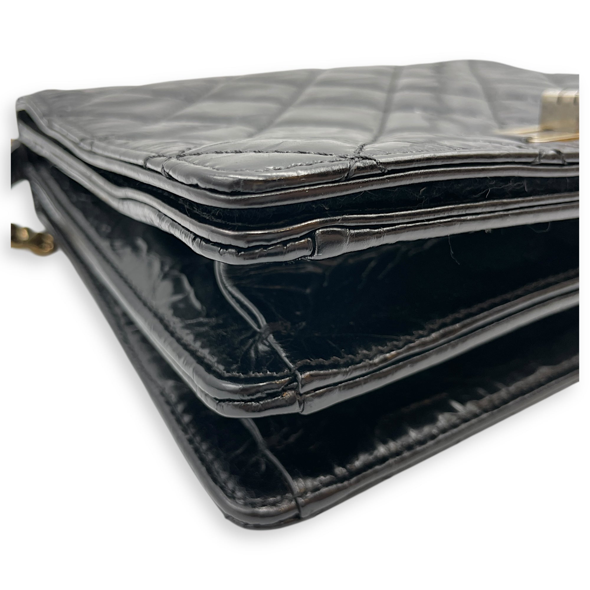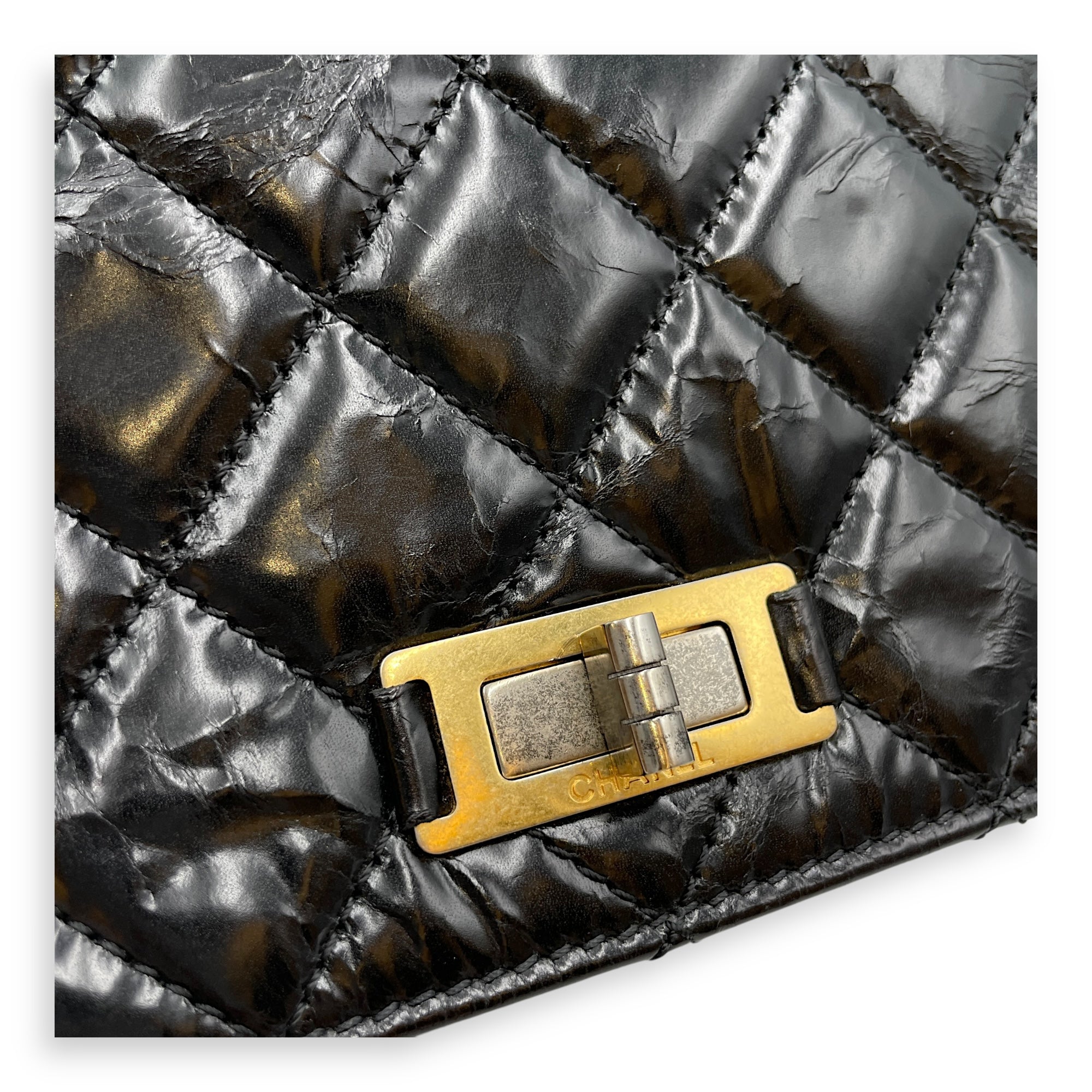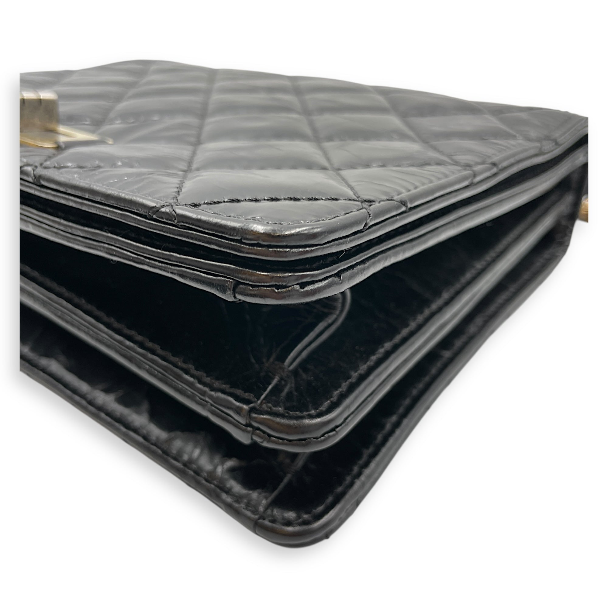 Be the first to review “Crinkled Quilted Rita Flap Black Shoulder Bag in Distressed Leather, Brushed Gold hardware”