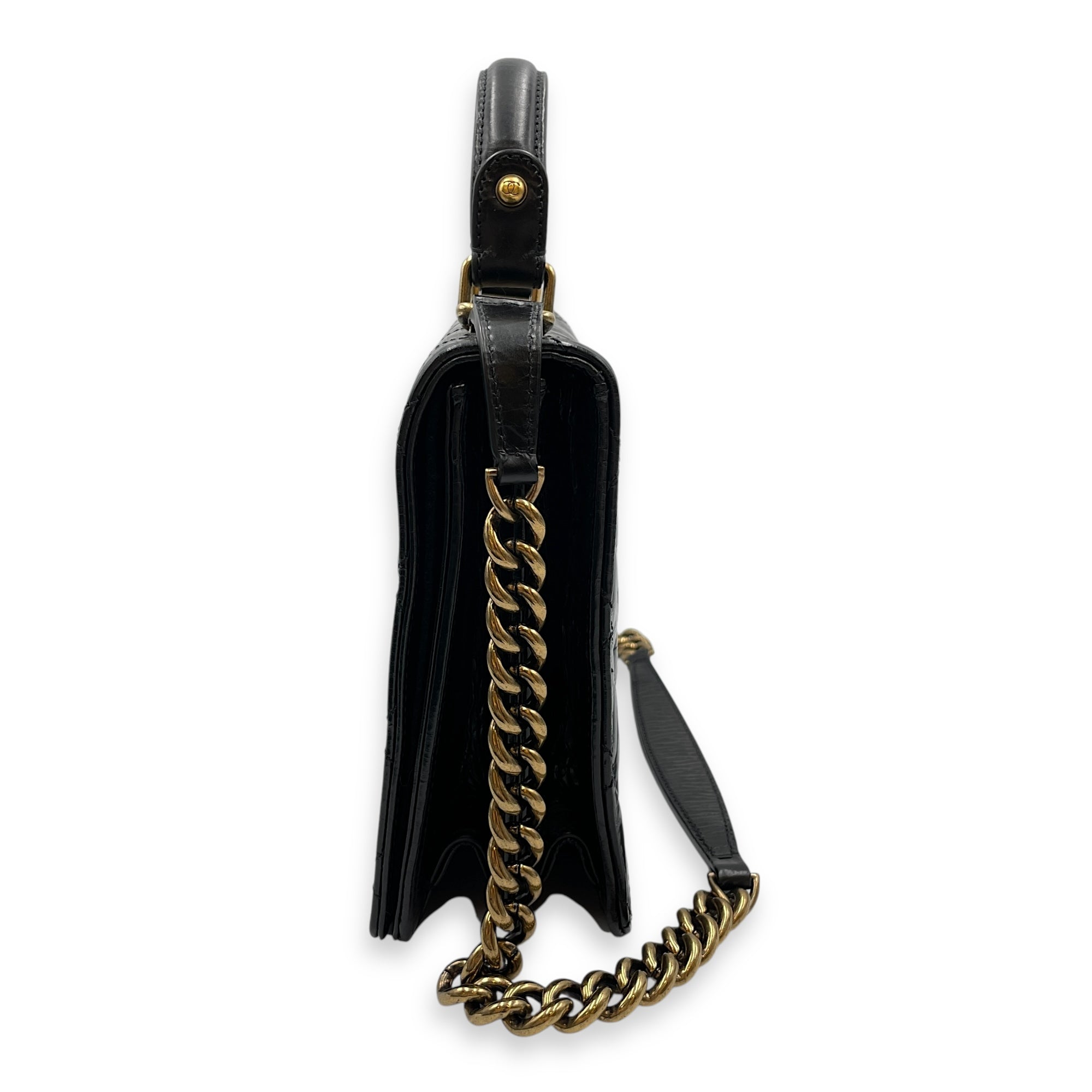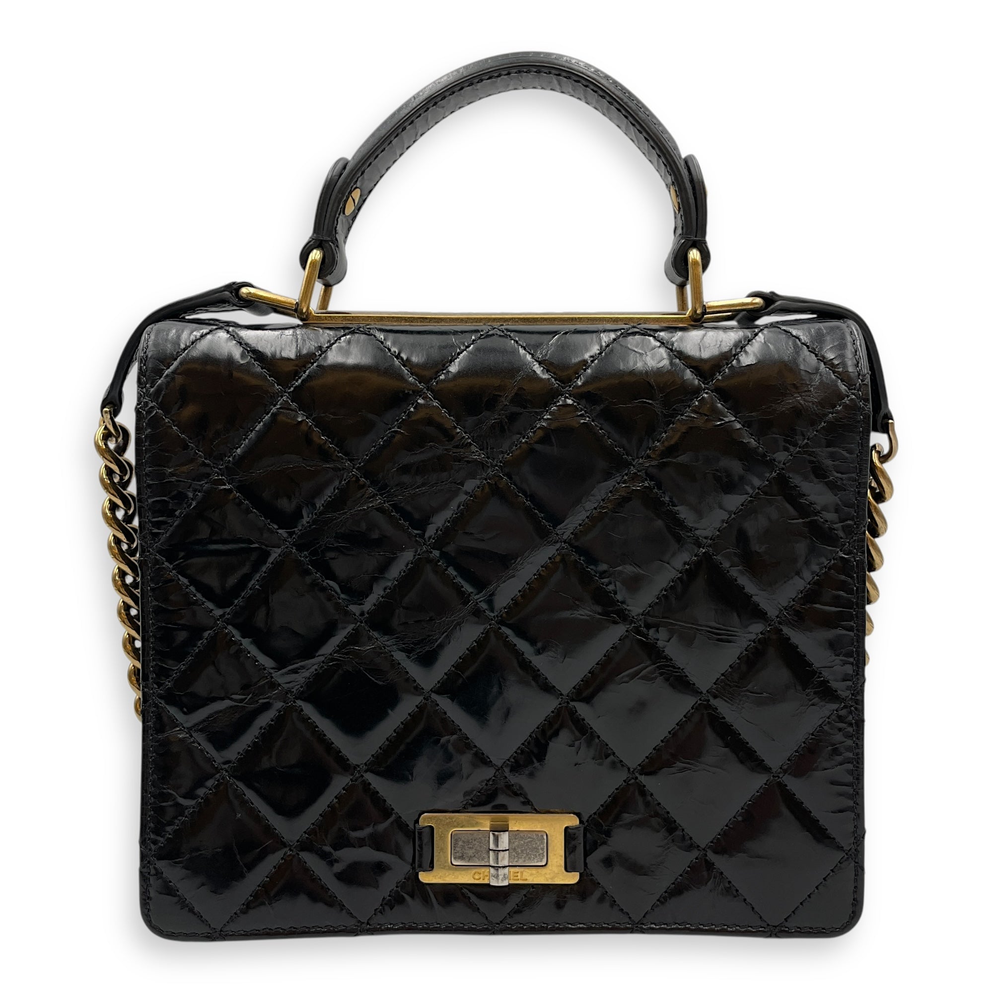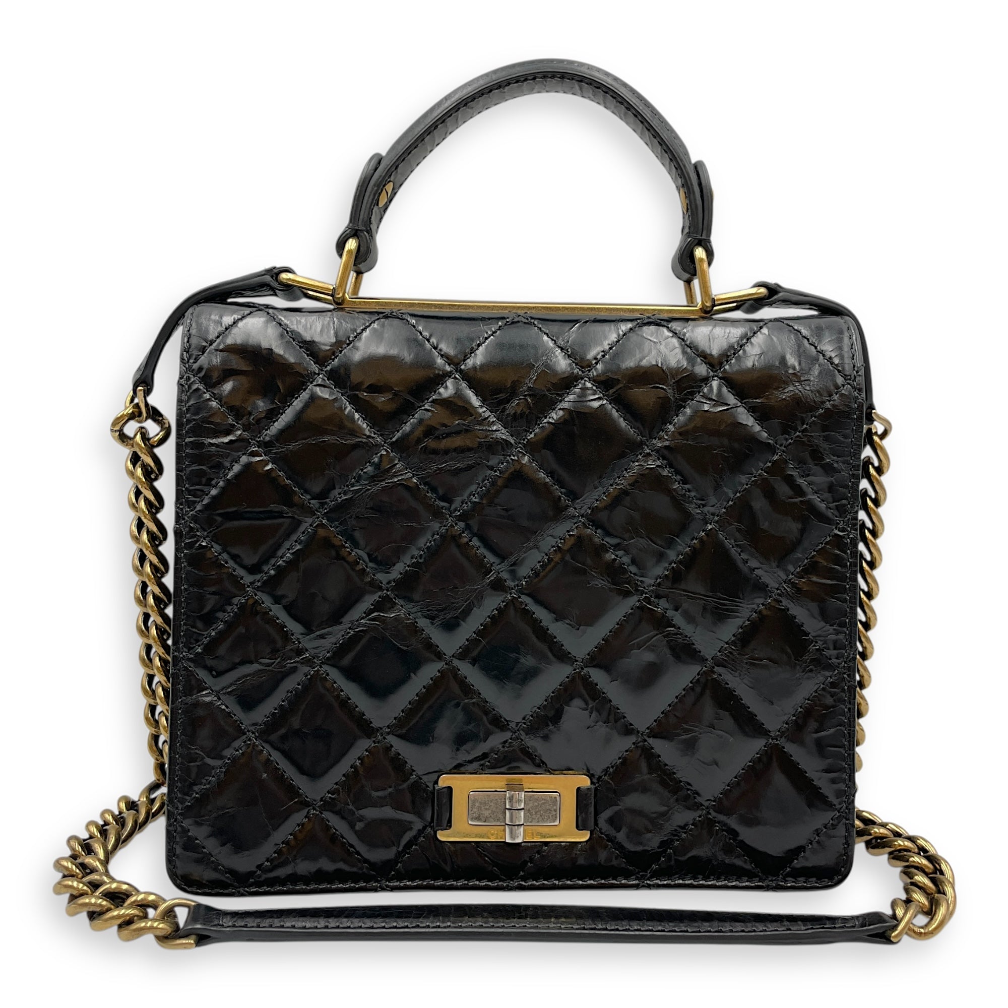 Be the first to review “Crinkled Quilted Rita Flap Black Shoulder Bag in Distressed Leather, Brushed Gold hardware”