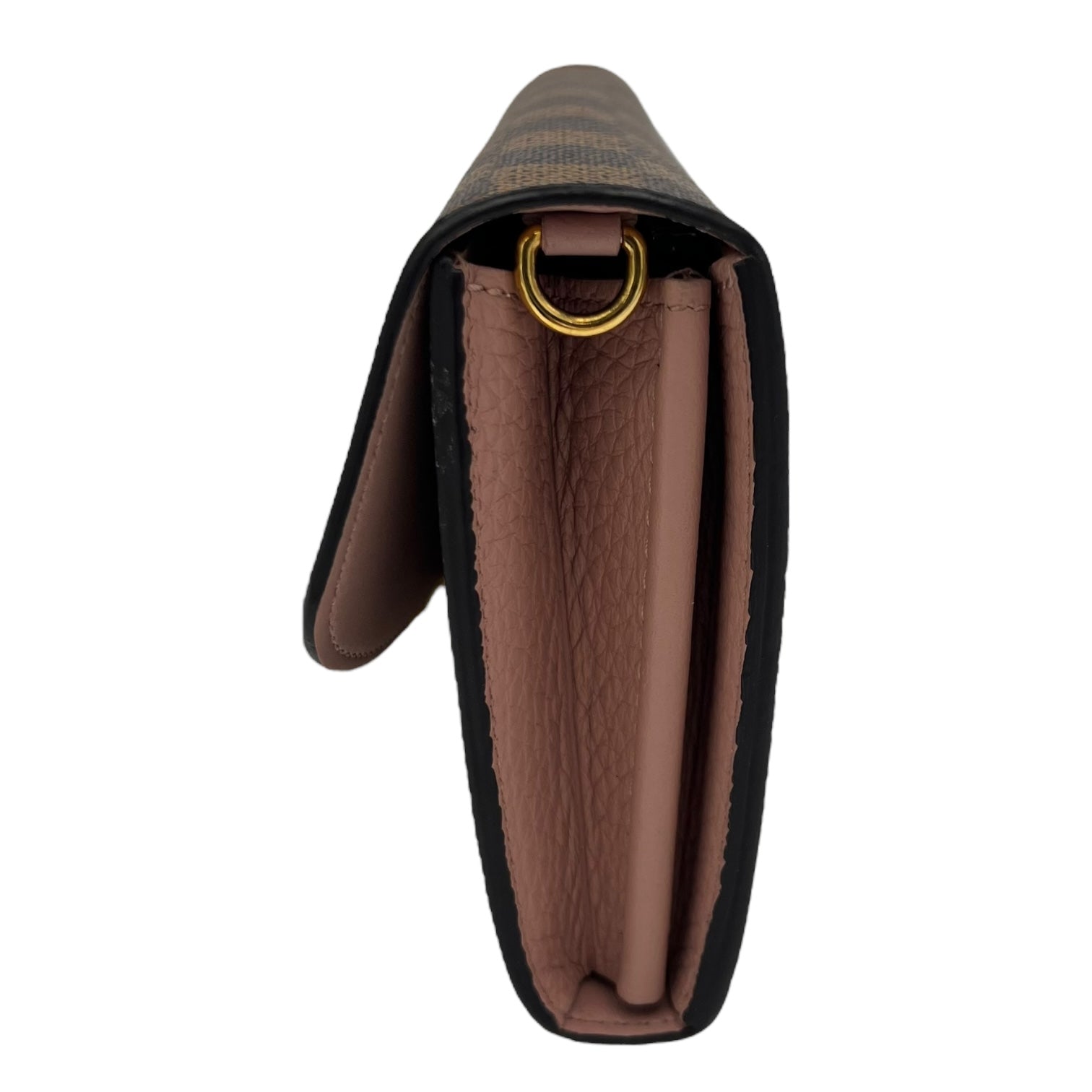 Croisette Wallet On Chain Damier Ebene in Coated Canvas, Gold hardware