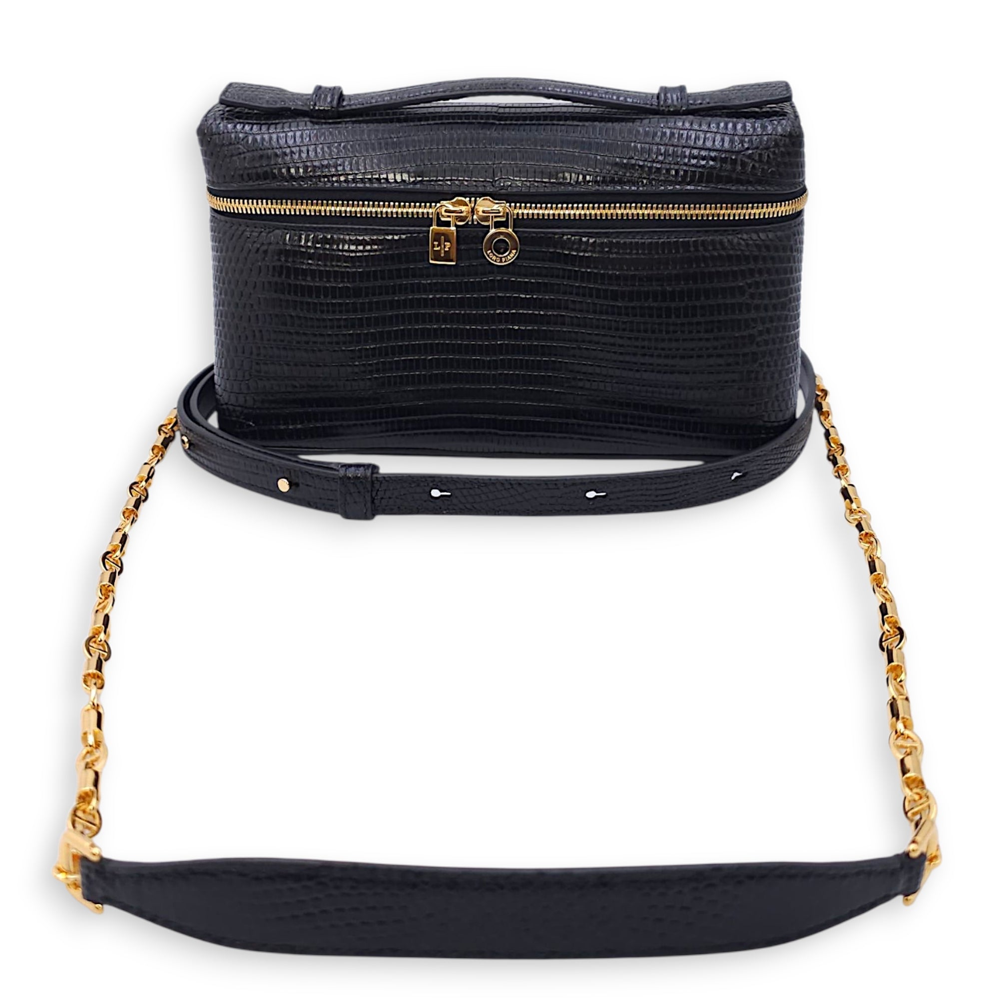 LP Extra Pocket 19 Black Shoulder Bag in Lizard, Gold hardware