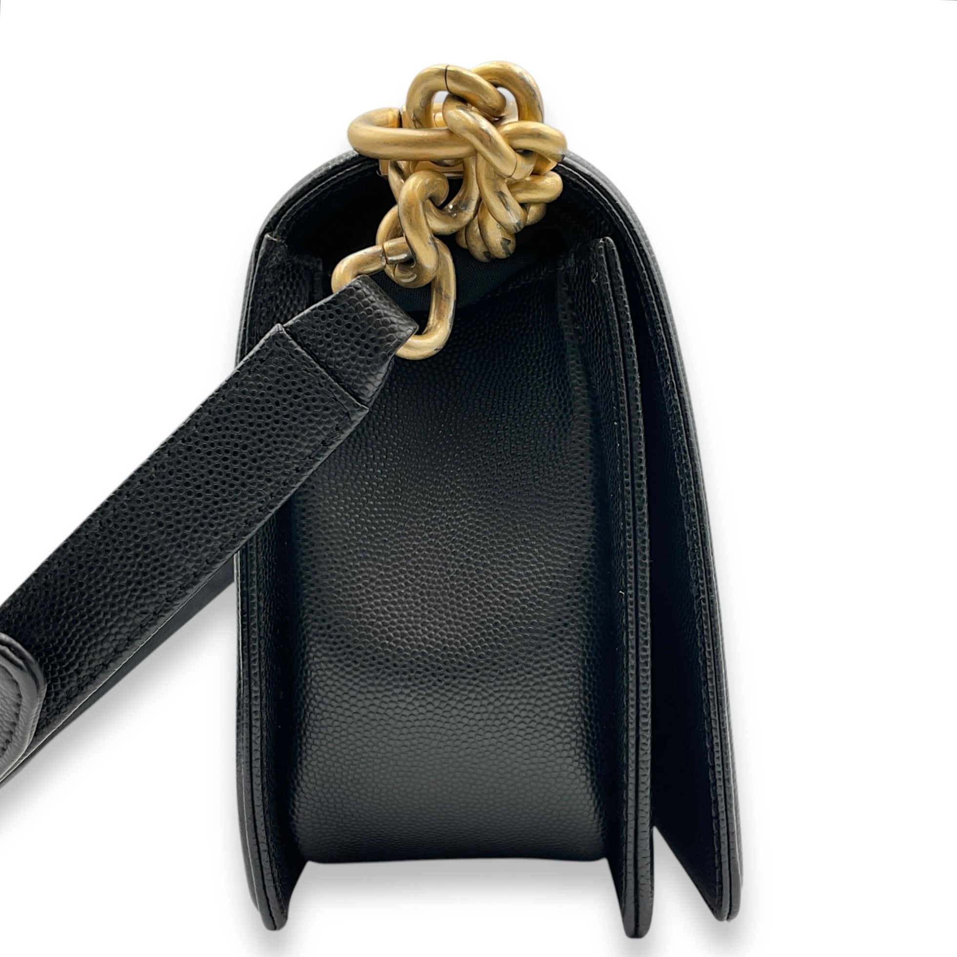 Quilted Boy (25cm) Medium Black Shoulder Bag in Caviar Leather, Guilloche hardware