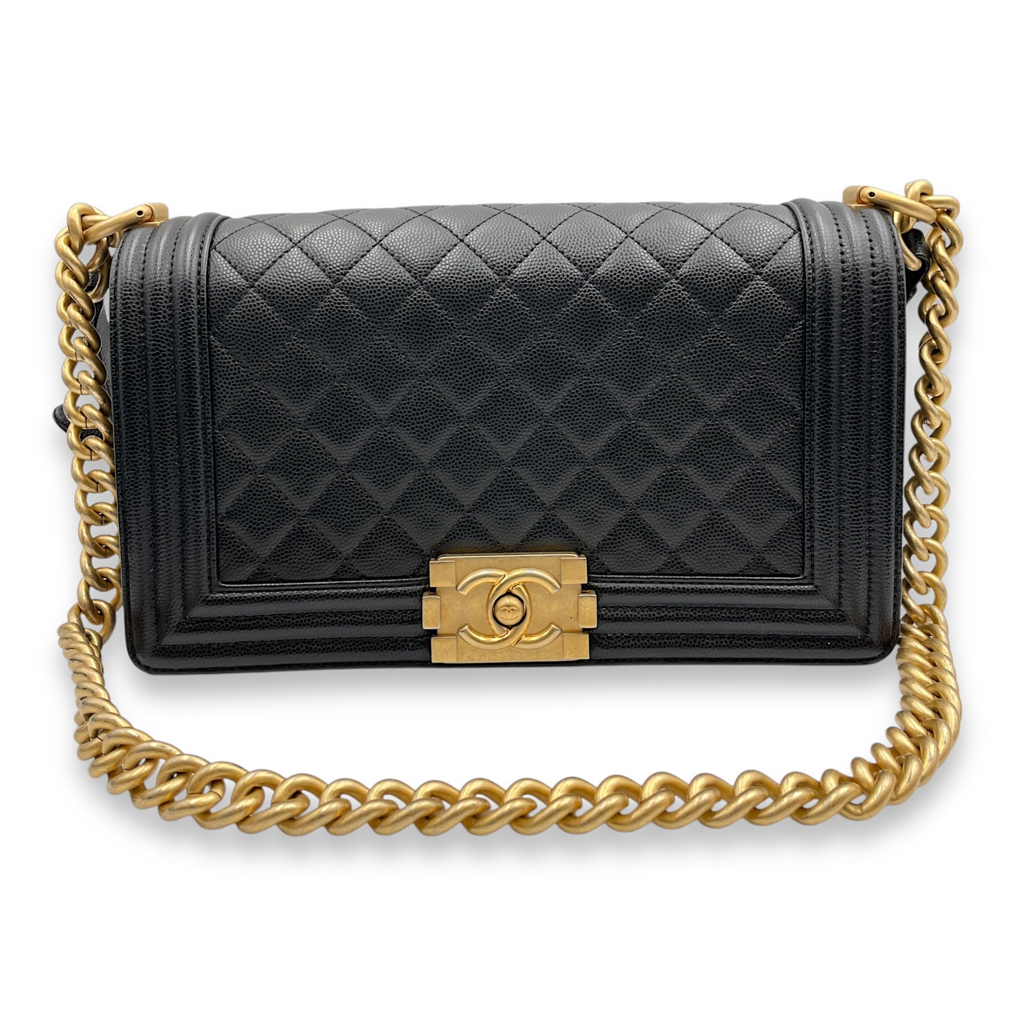 Be the first to review “Quilted Boy (25cm) Medium Black Shoulder Bag in Caviar Leather, Guilloche hardware”