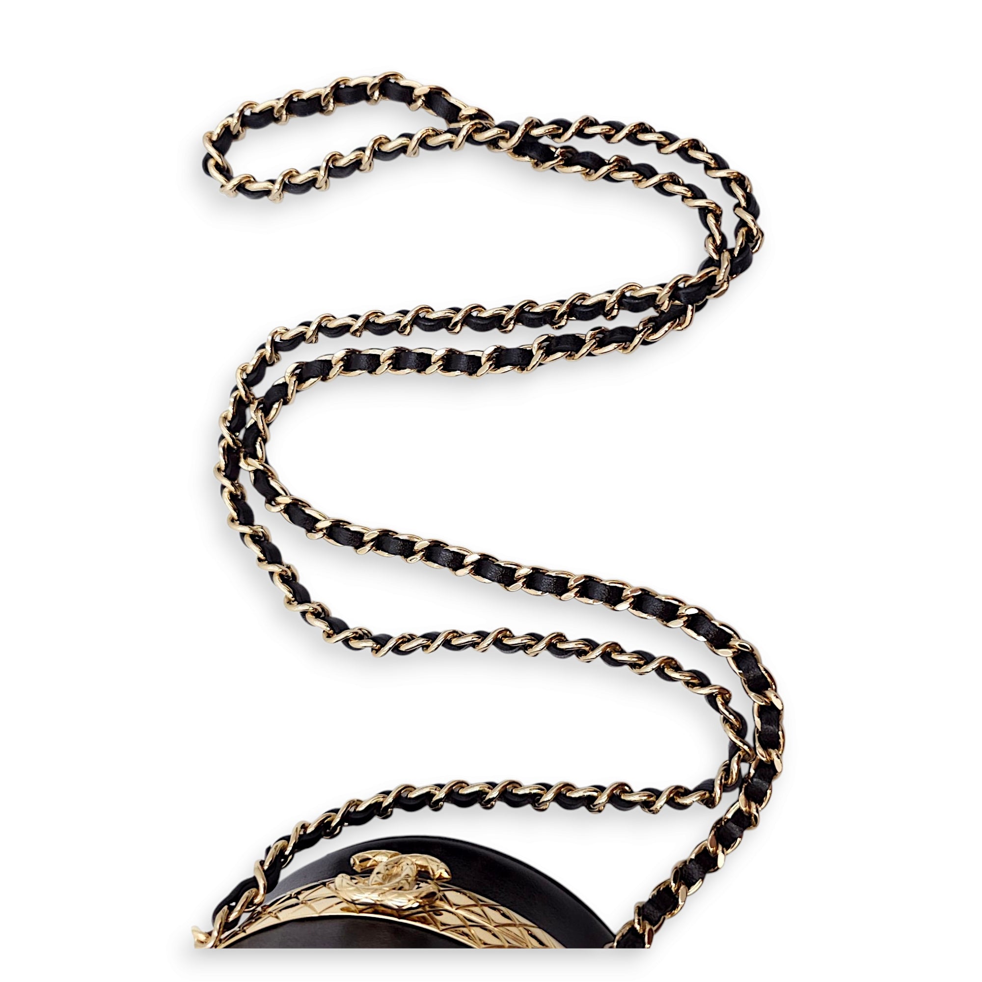 Be the first to review “Quilted Filigree Chain Around Circle Black Crossbody Bag in Lambskin, Gold hardware”