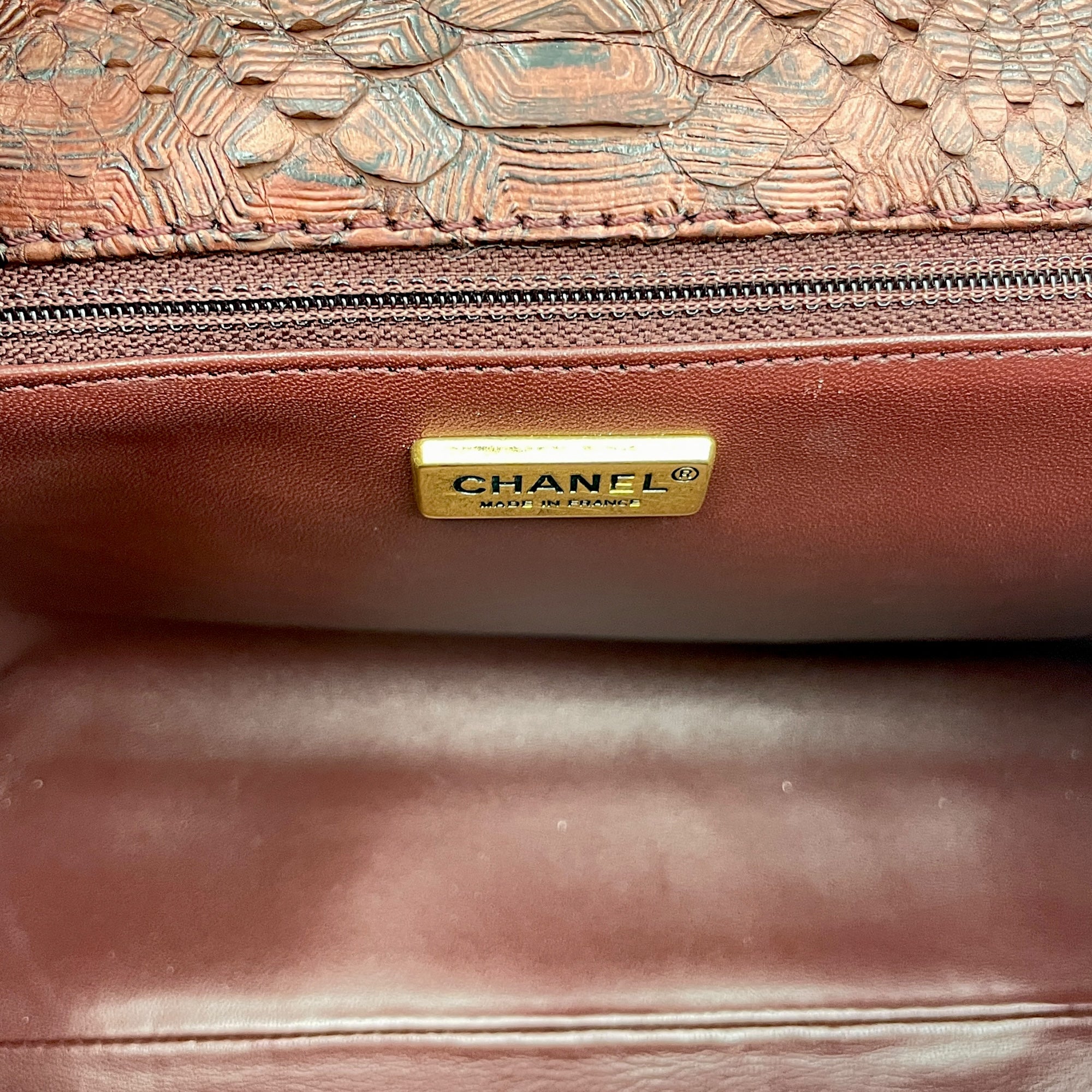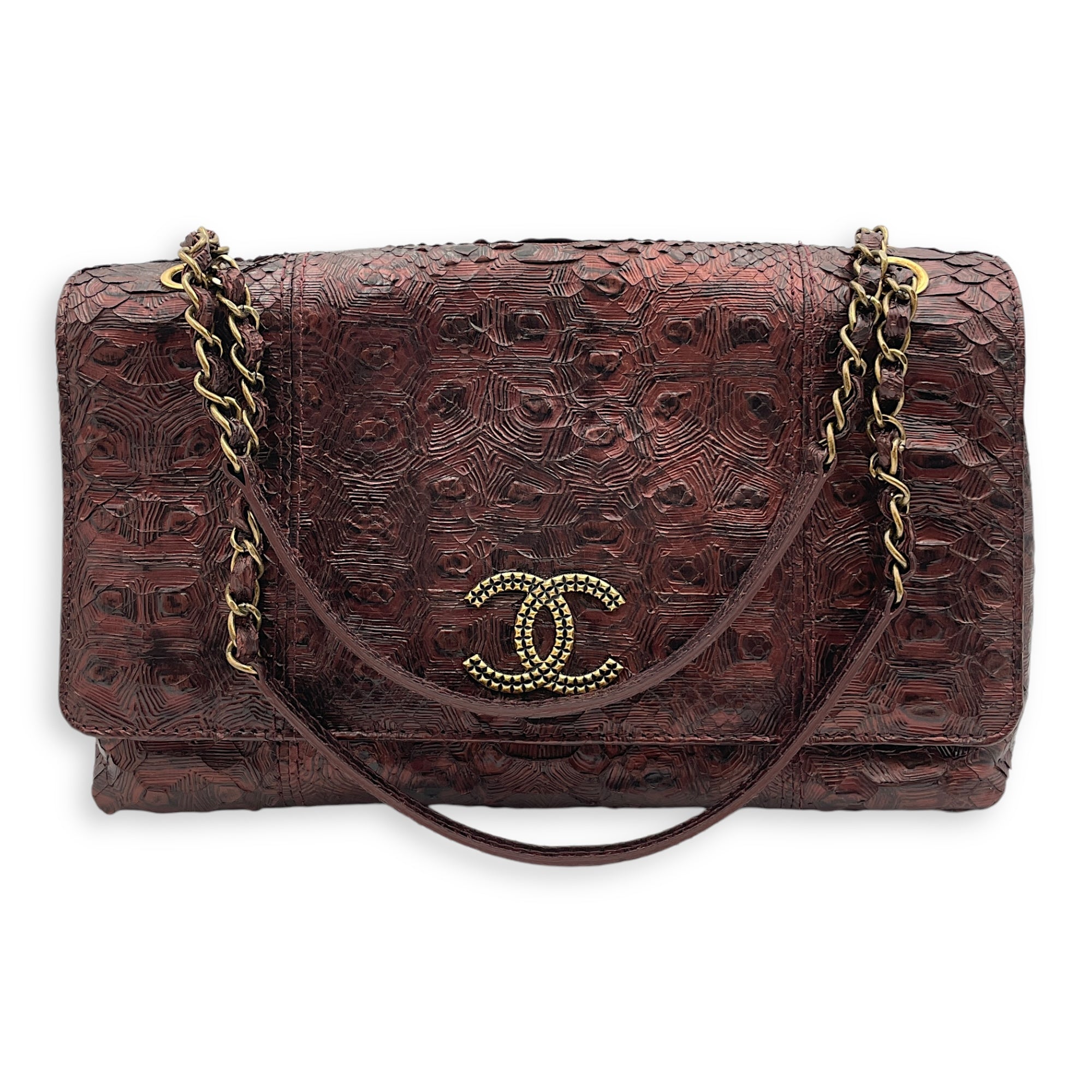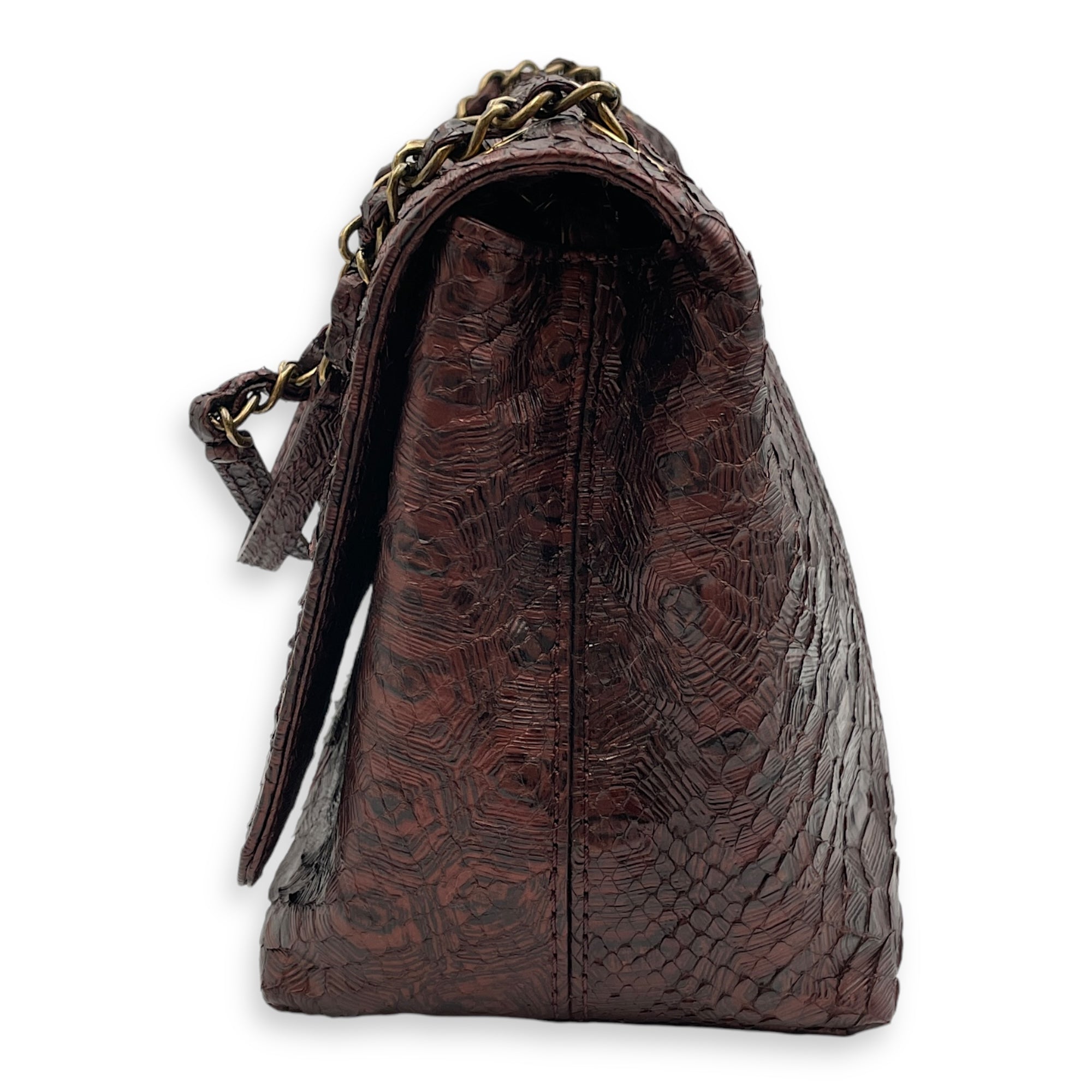 Seasonal Paris-Byzance Flap 29x18x12cm Burgundy Shoulder Bag in Python Leather, Gold hardware