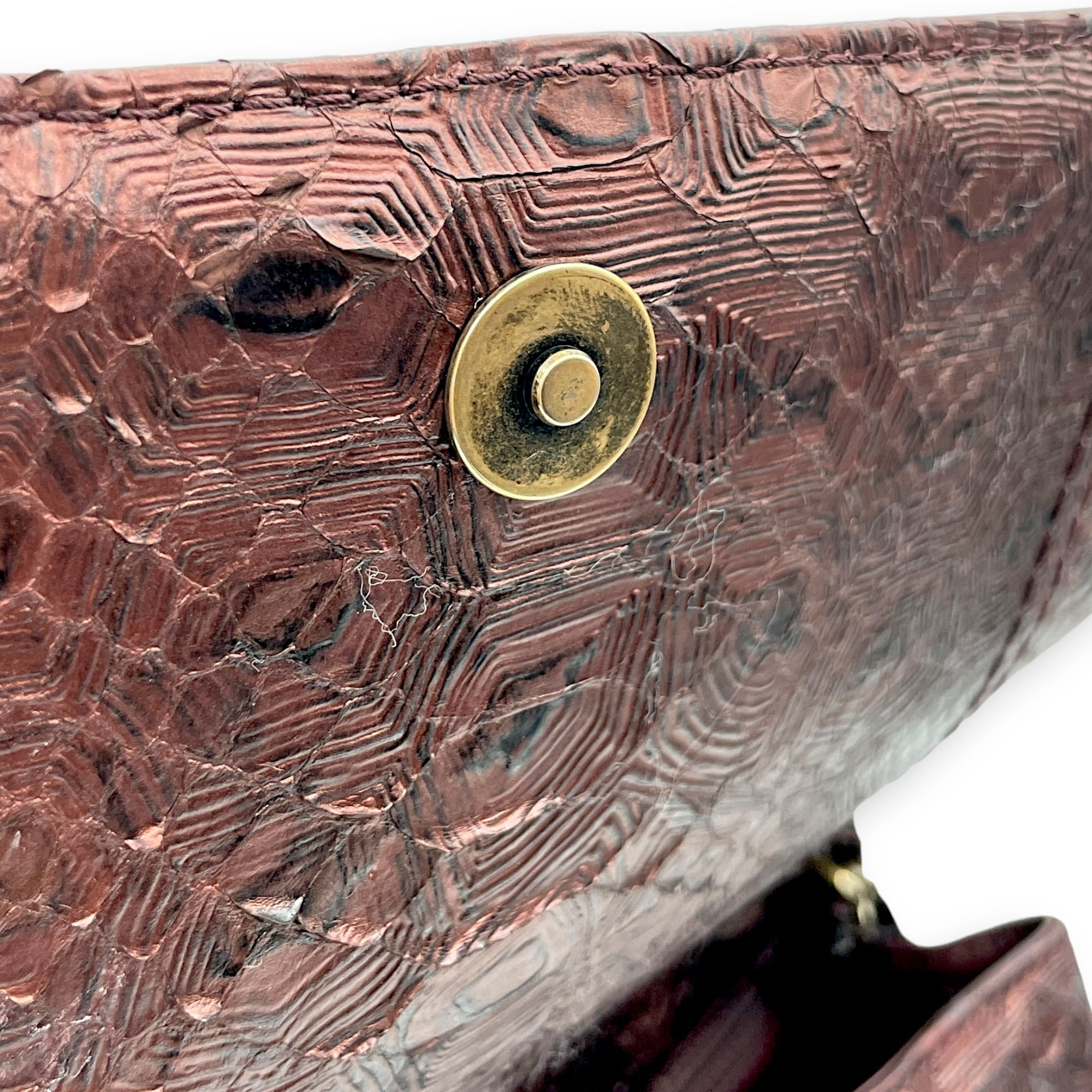 – Surface: Curling on python leather. Slight stickiness
