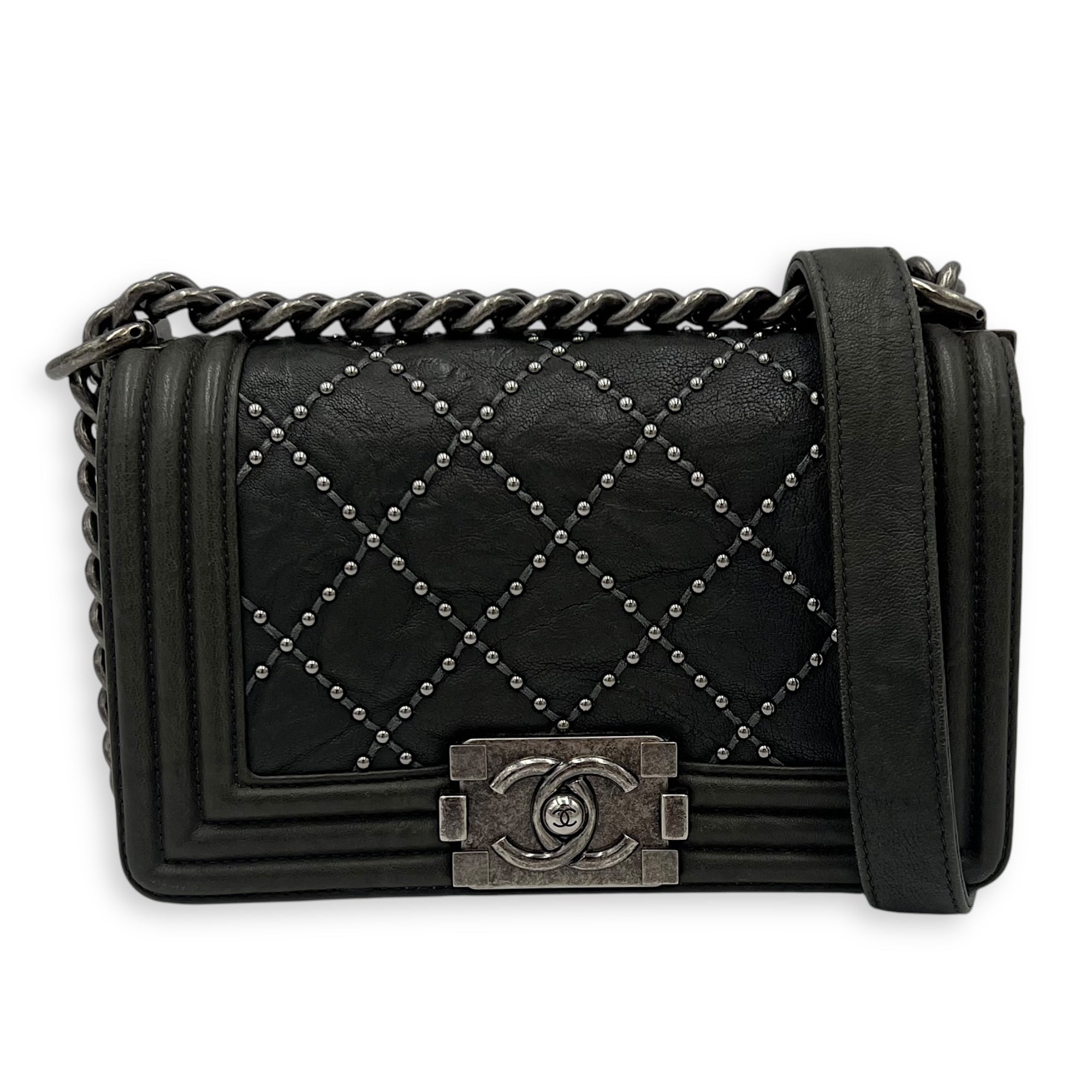 Be the first to review “Studded Boy Small Crossbody bag in Calfskin, Ruthenium Hardware”