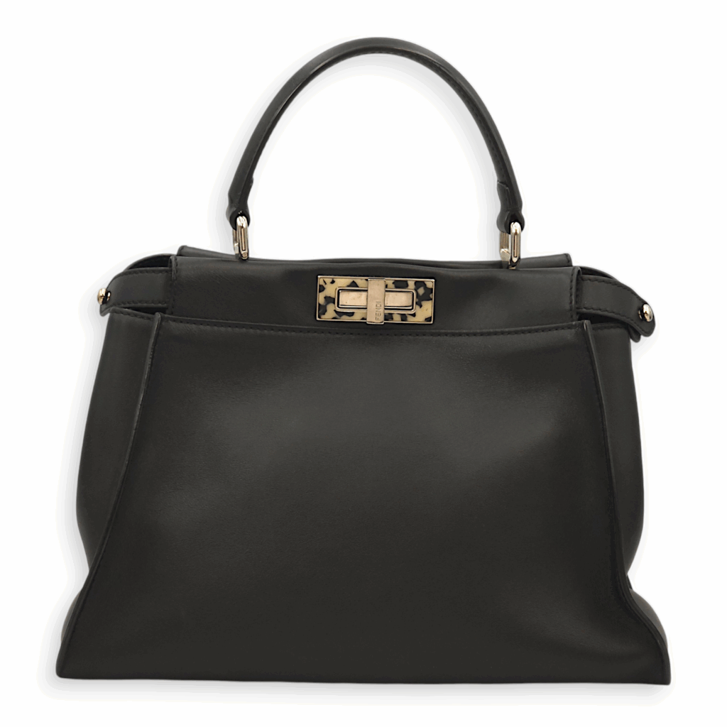 Peekaboo Medium Black Top Handle Bag in Calf/Resin, Palladium hardware