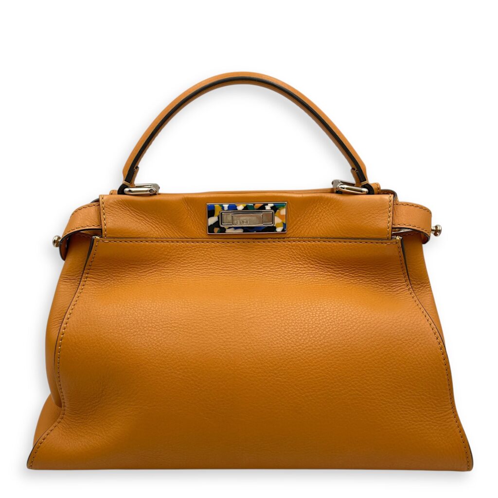 Peekaboo Medium Top handle bag in Calfskin, Silver Hardware