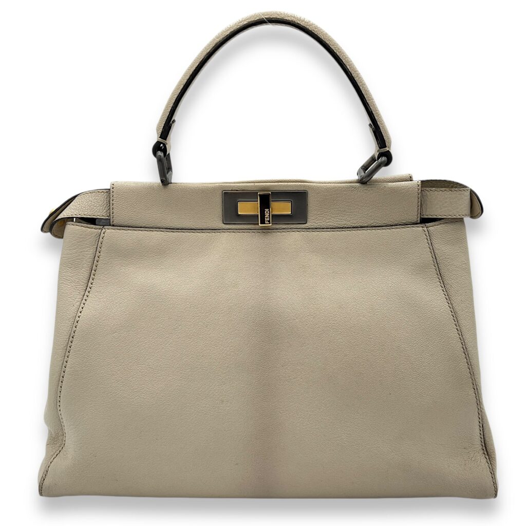 Peekaboo Medium Beige Top Handle Bag in Nappa Leather, Silver hardware