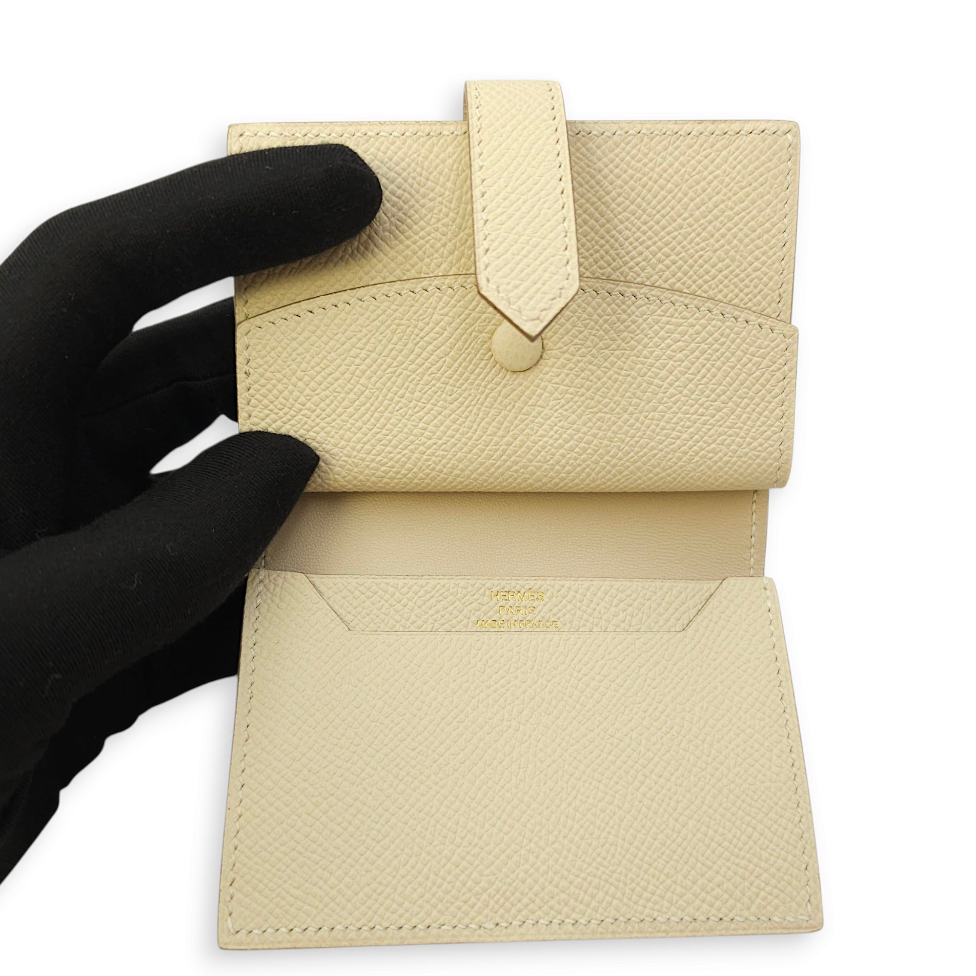 Bearn Mini Craie Wallet in Epsom, Gold hardware
