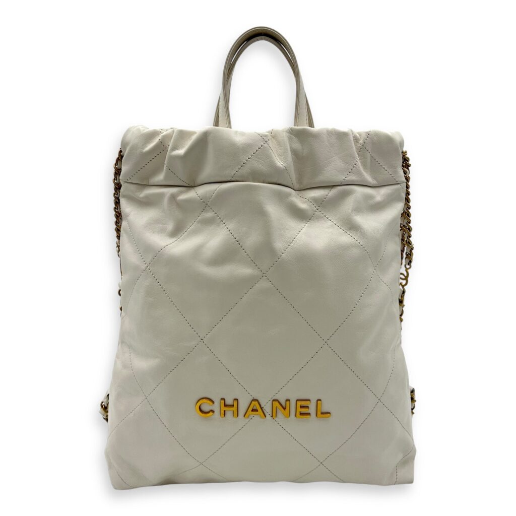 C22 Backpack White in Calfskin, Gold hardware
