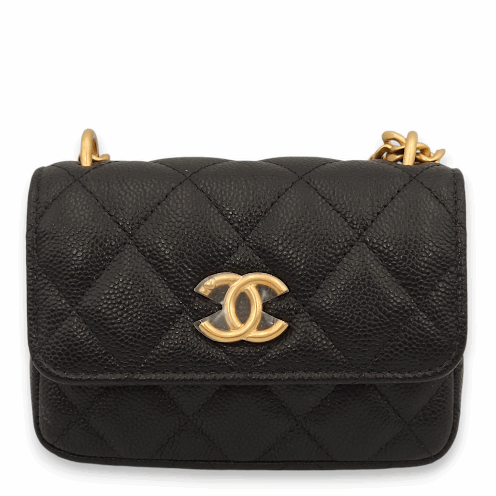 Chanel Quilted Black Wallet On Chain in Caviar Leather